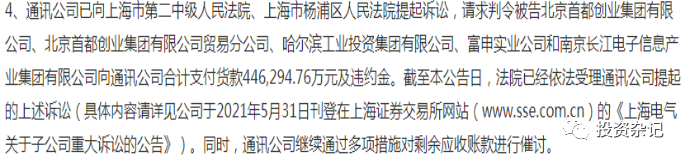 第五,欠款的來頭也不小,單純書面研究也不清楚為啥拖欠賬款。根據(jù)公司公告,前幾大欠款方來頭都比較大,除了富申實業(yè)公司是民企外,首創(chuàng)集團是北京的大國企,哈爾濱工業(yè)投資集團是哈爾濱當?shù)貒螅暇╅L江電子信息產(chǎn)業(yè)集團是中電熊貓的子公司(在往上追溯是中國電子,實際控制人是國務院國資委)。民企欠錢也就罷了,如果這種大國企、大央企在正常的商業(yè)往來中也欠錢是有點不可思議。所以有種可能就是這些央企、國企被騙了,根本不存在底層的商業(yè)交易。