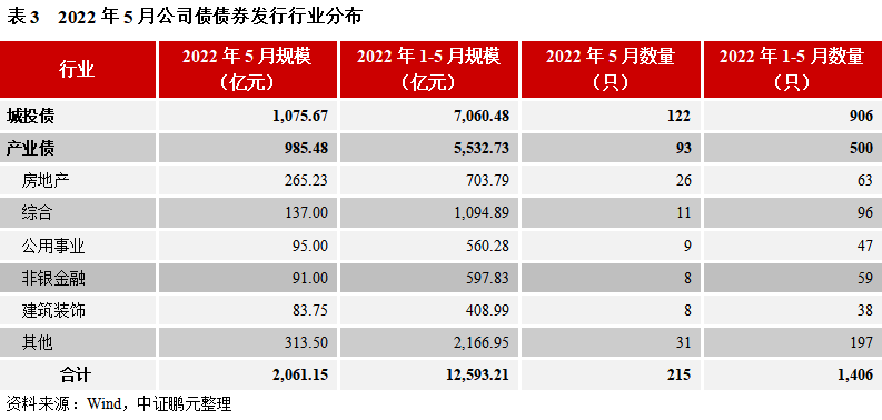 5. 5月份,交易所公司債中城投債發行規模占比52%,產業債行業以房地產和綜合為主