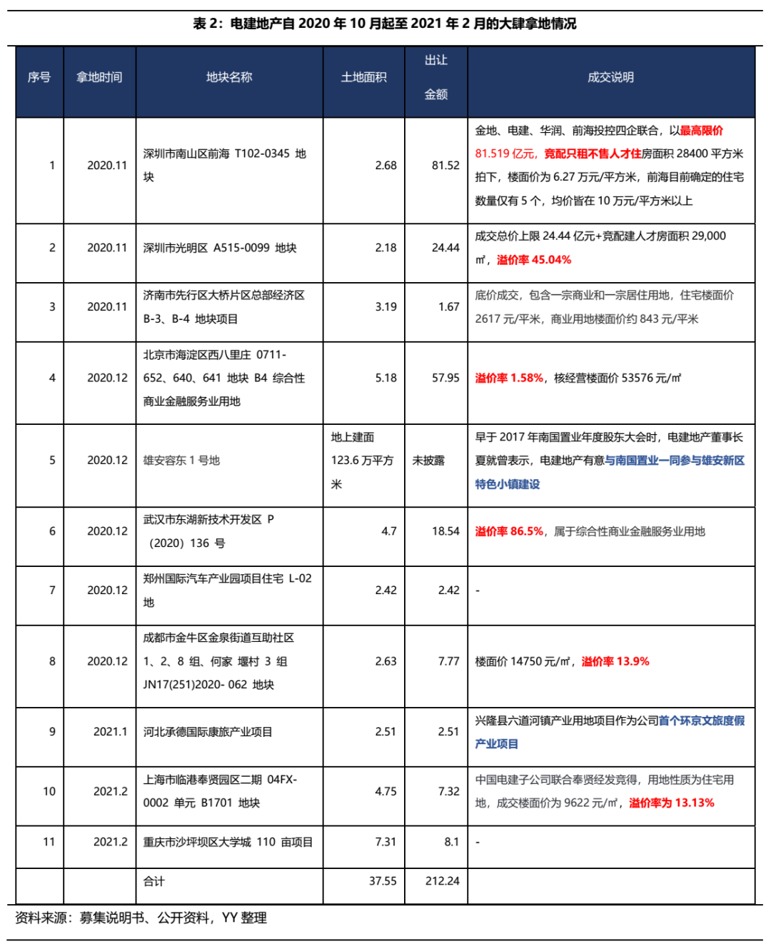 ① 2020年10月到2021年2月拿地金額超過200億元,公司2019年總拿地金額為271億元,且近期所拿部分地塊溢價率較高,且開始涉足雄安特色小鎮(zhèn)、環(huán)境文旅項目等新領(lǐng)域;