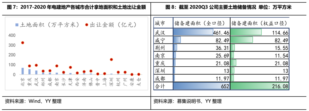 存量土儲方面,截至2020Q3,公司主要城市的全口徑建筑面積合計652萬平方米,權(quán)益口徑儲備建筑面積合計216.08萬平方米,公司合同銷售面積(并表項目全部+參股權(quán)益比例)為172萬平方米,存量土儲較為充裕,主要位于二線城市,武漢、咸寧和重慶的權(quán)益儲備建面積位居前三,分別達到114.66億元、82.49億元和21.08億元,而武漢、荊州、南京的全口徑和權(quán)益口徑建面差異較大,這幾個城市是南國置業(yè)之前重倉區(qū)域,說明其聯(lián)合開發(fā)項目較多。