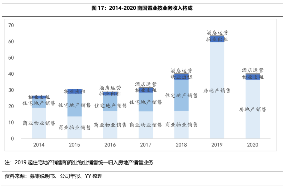 公司聚焦房地產(chǎn)主業(yè),以剛需和改善類住宅為主,商業(yè)地產(chǎn)為輔,2014年6 月公司收購南國置業(yè)前,公司以住宅地產(chǎn)項目為主,股權(quán)收購后,公司進一步拓展商業(yè)地產(chǎn)業(yè)務,產(chǎn)品覆蓋住宅、寫字樓、酒店等多種業(yè)態(tài),形成住宅+地產(chǎn)的業(yè)態(tài)結(jié)構(gòu)。