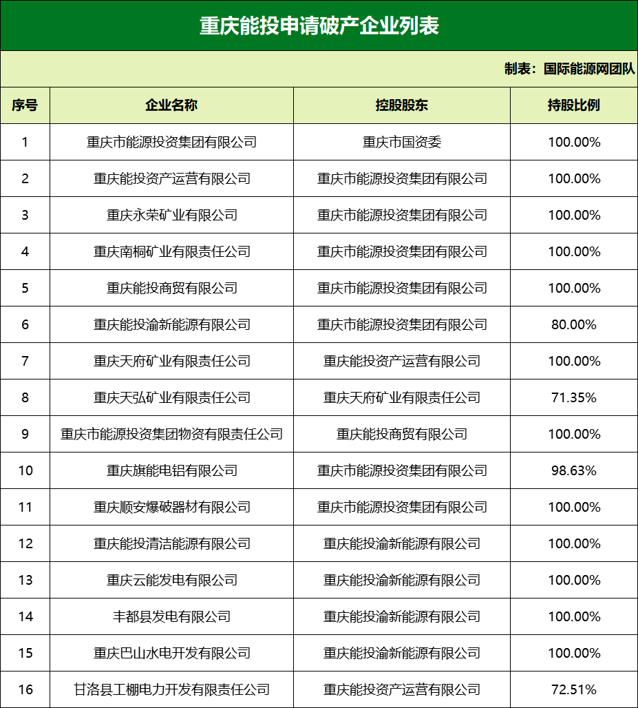 最近幾天, 重慶能源集團等16家企業申請破產重整的消息刷屏了網絡。公開資料顯示,除重慶能投外,其他15家公司均為重慶能投的控股子公司。