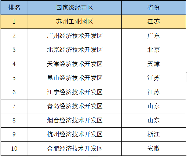 表1:國家級經開區綜合考評TOP10