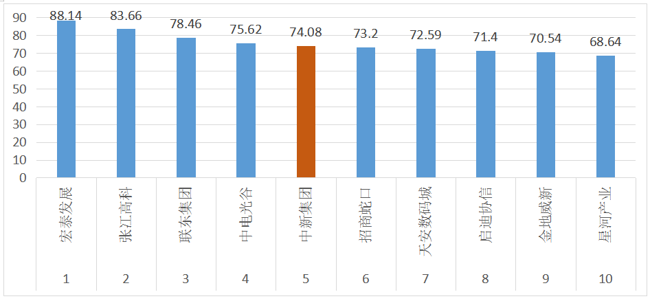 年報顯示,2021年中新集團主板塊產業園區開發運營收入為30.59億元,占比78.09%,同比增長10%,是營業收入的壓艙石。中新集團大力推進園區開發運營,集聚核心資源要素,提升競爭力。在2021年睿和智庫推出的全年度產業園區20強榜單中,中新集團得分74.08,排名第五。
