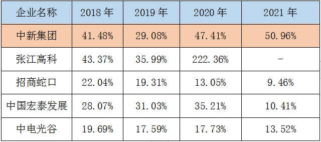 表2:2018年-2021年產業地產頭部企業年凈利潤率情況