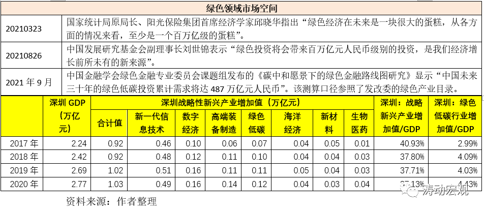 以公布相關數據的深圳為例,其戰略新興產業增加值占其GDP的比例高達37%以上(其中,綠色低碳增加值占其GDP的比例達到4.43%)。