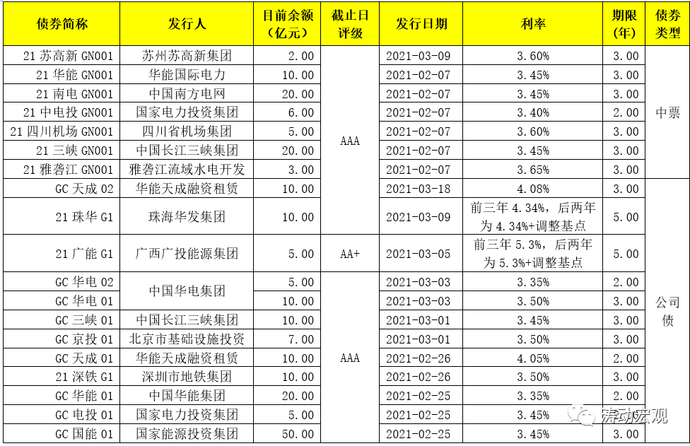 自2021年2月銀行間市場首次推出碳中和債推出以來,僅一個多月的時間碳中和債便發行了19只(規模合計達到218億元)。其中,銀行間中票7只(合計66億元)、交易所公司債12只(合計152億元)??梢钥闯觯m然銀行間市場率先推出,但交易所公司債卻上量更快。且從目前發行的主體來看,大多為能源類國企(評級多為AAA),發行利率多在3.30-4%之間。