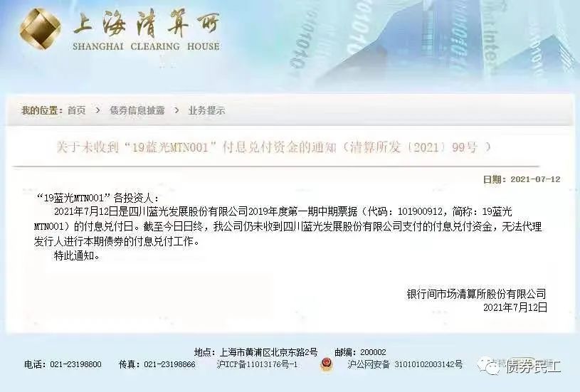 藍光發(fā)展已于2021年7月12日正式債券違約,目前違約債務(wù)金額合計為241.71億元(截至2021年11月8日)。根據(jù)上海清算網(wǎng)2021年7月12日的公告,藍光發(fā)展發(fā)行的“19藍光MTN001”未能按時支付付息兌付資金,構(gòu)成了實質(zhì)性債券違約。這是繼泰禾集團、華夏幸福違約之后的第三家千億房企發(fā)生債券實質(zhì)性違約。