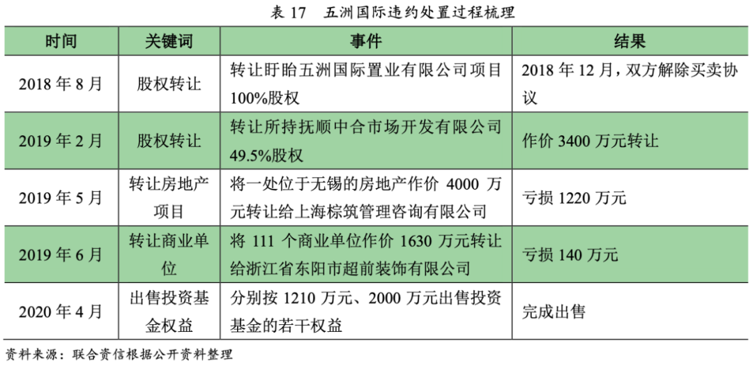 (2)違約處置方式二:變賣資產(chǎn)——五洲國際
