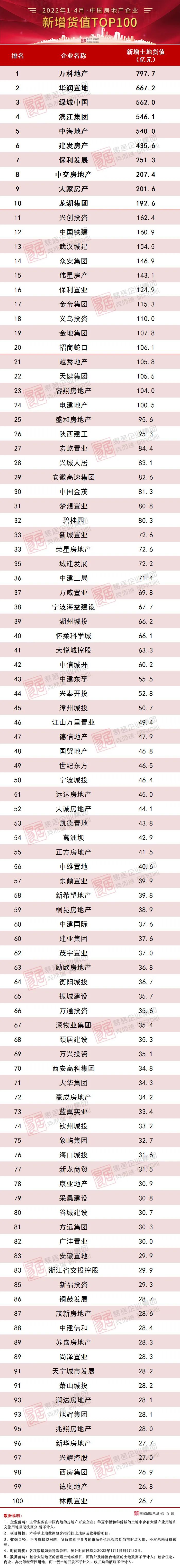 5家房企年內新增貨值超過500億元,萬科以797.7億元位列第一,本月萬科在深圳競得寶安新安地塊貨值就超過百億,其次華潤、綠城、濱江和中海貨值也超過500億。