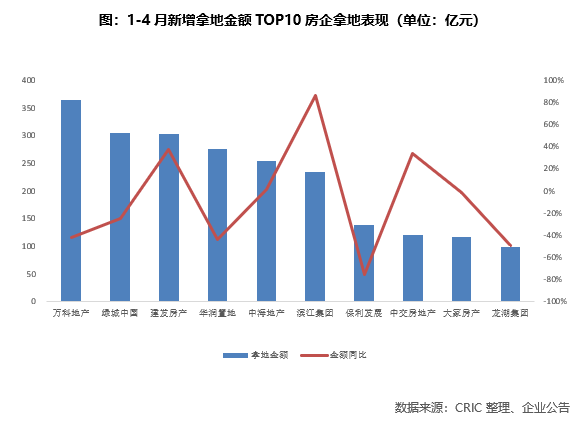 從1-4月拿地金額靠前的企業來看:
