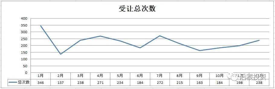 受讓次數的數據表現與主體數量一致。