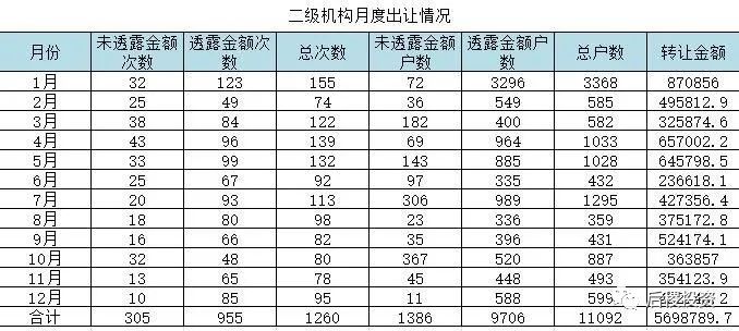 3、二級機構月度出讓和受讓情況