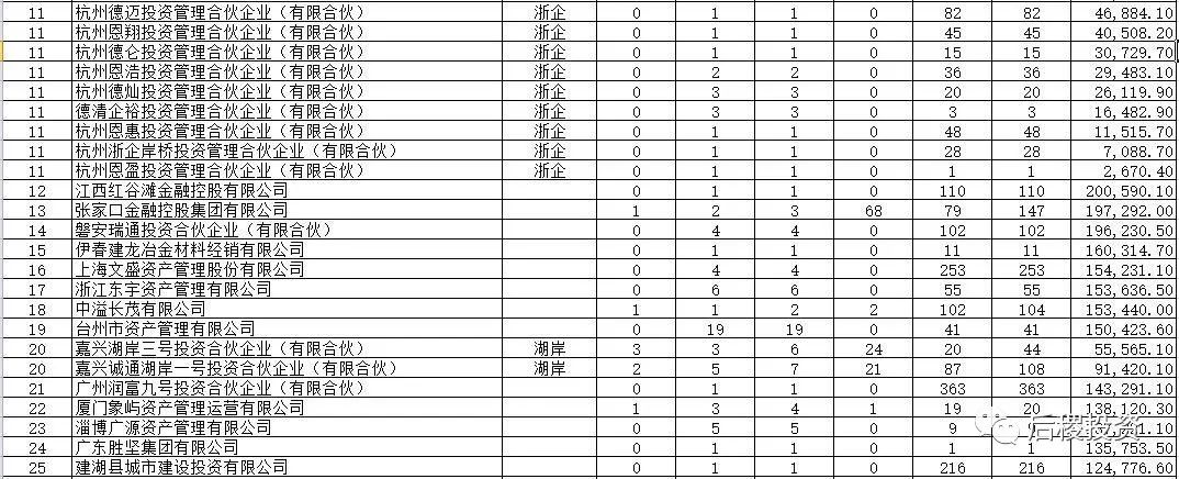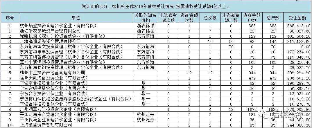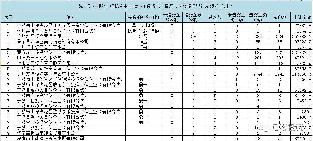 浙江、江蘇和廣東的二級機構出讓戶數表現基本一致。貴州的戶數特別高是因為有一筆成交記錄中,有個人債權2000多戶,河北、河南和新疆的戶數較高其中也有資產包性質的原因。