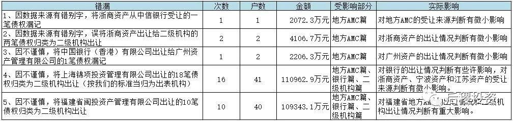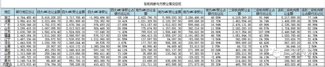 在白皮書《銀行篇》發布后,有銀行業的前輩指出,我們商業銀行不良資產的總新增額,除去新增和出讓額外,還應當加上銀行自己核銷和清收的債權總額,對此我們表示認同和感謝。但該數據取得較為困難,且跟債權轉讓市場關聯不大,故我們不再統計。前輩提出了一個統計方法:查一下全國各上市銀行的年報中的撥備當年計提數,加上年底撥備,減去年初撥備,基本上小于等于清收加核銷,但撥備回沖比較難統計。非上市銀行數據則難以獲取,故這樣也難做到完全統計,但上市銀行數據仍舊有參考意義。感興趣的朋友可按該方法去自行核實。