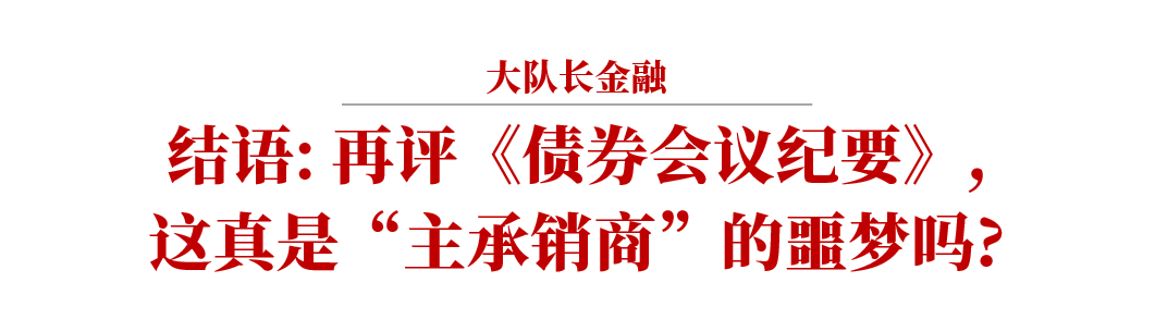 其實, 《債券會議紀要》及近期的案件只是讓大家真正注意到了債券市場并非信息披露的法外之地, 債券承銷不僅僅是賣債券, 也是債券市場的“看門人”, 所以《債券會議紀要》絕非主承銷商的“噩夢”, 只是“夢醒”的時候。
