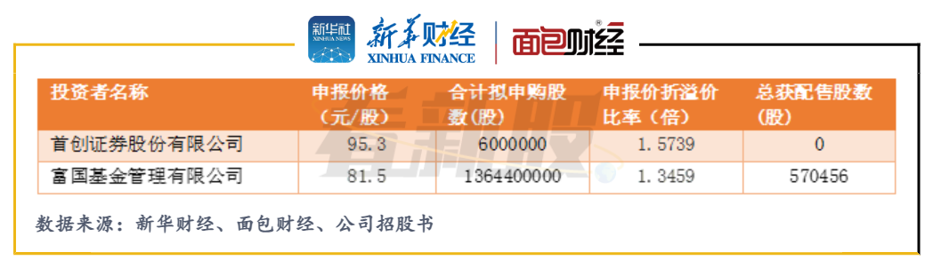 首創(chuàng)證券和富國(guó)基金2家投資機(jī)構(gòu)報(bào)價(jià)大于等于81.5元/股,明顯較高。其中首創(chuàng)證券報(bào)出95.3元/股的價(jià)格,被直接歸為“無(wú)效高價(jià)”。高報(bào)價(jià)雖被剔除,但仍會(huì)對(duì)最終發(fā)行價(jià)產(chǎn)生一定影響。