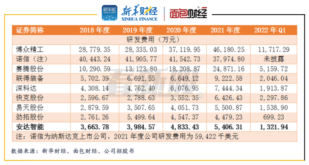身為科創(chuàng)板新上市的智能制造裝備業(yè)公司,安達(dá)智能當(dāng)前的研發(fā)投入和研發(fā)能力或難具優(yōu)勢(shì)。