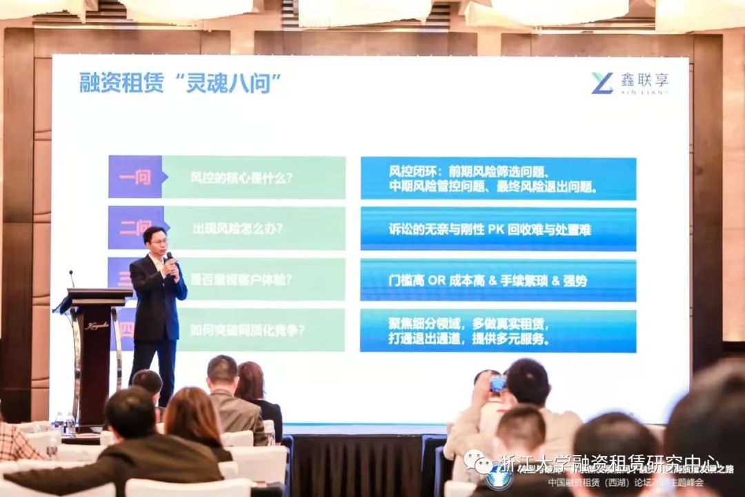 第一,風控的核心是什么?前期風險篩選問題、中期風險管控問題、最終風險退出問題。第二,出現風險怎么辦?訴訟的無奈與剛性PK回收難與處置難。第三,是否重視客戶體驗?門檻高或成本高疊加手續(xù)繁瑣和態(tài)度強勢。第四,如何突破同質化競爭?聚焦細分領域,多做真實租賃,打通退出通道,提供多元服務。第五,如何回歸租賃本源?租賃應同時滿足出租人擁有物權并允許客戶退回。第六,中小企業(yè)融資難題誰來解決?為什么是銀行做不了的事情?融資租賃能做好補充嗎?第七,融資租賃的天然優(yōu)勢在哪里?物權保障是天熱優(yōu)勢,出現風險時,租賃物可以快速變現,并且能覆蓋未還租金。第八,行業(yè)發(fā)展的方向在哪里?客戶需求由買到租的變化,客戶經營靈活性的需要,提高資產流動性要求、創(chuàng)新產品的出現。