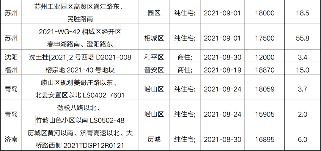 此外,天津南開區、蘇州工業園區、濟南歷城區、福州晉安區等均掛出多宗優質地塊,房企也可重點關注。