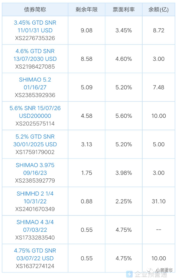 《小債看市》統計,目前世茂集團存續8只美元債,存續規模57.2億美元,其中將有41.1億美元債于一年內到期,其面臨集中兌付壓力較大。