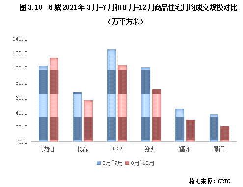 第三輪土拍熱度進一步轉(zhuǎn)冷的城市,包括廈門、福州、長春、天津、沈陽和鄭州,共計6個城市。其中,和第二輪相比熱度下滑幅度最大的城市當屬廈門,三輪供應的14幅地中僅成交了7幅,流拍率飆升至50%,同時成交地塊中無一宗觸頂,包括此前競爭熱度較高的島內(nèi)地塊。