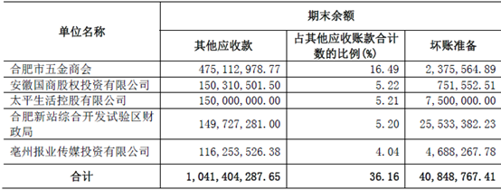 2017年底國(guó)購(gòu)?fù)顿Y前五大其他應(yīng)收款明細(xì)
