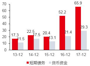 國(guó)購(gòu)?fù)顿Y近幾年短期債務(wù)和貨幣資金情況