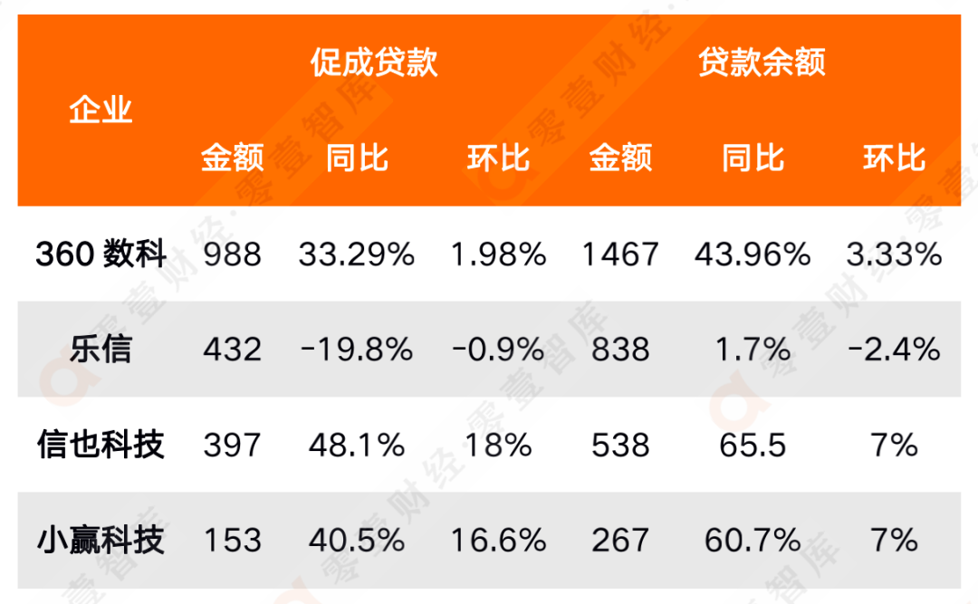在小微貸方面,信也科技的增長勢頭最猛,一季度促成小企業貸款98億元,占比24.7%,同比增長了122.7%。