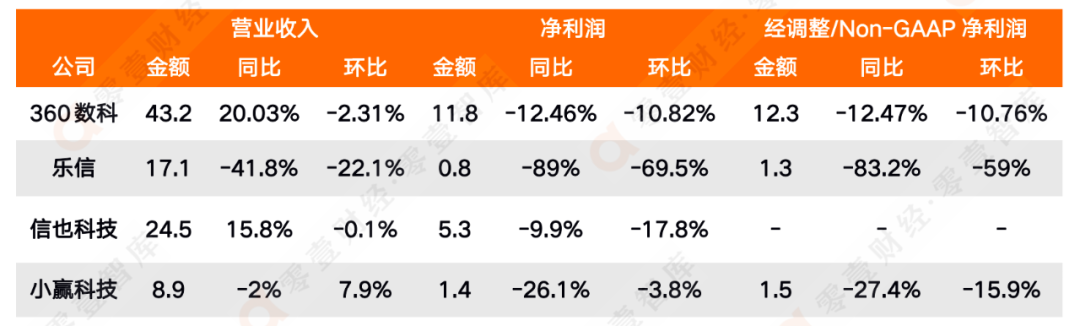 2022年一季度,360數科實現營業收入43.2億元,同比增長20.3%,環比略降2.31%;實現凈利潤11.8億元,同比下降12.46%,環比下降10.82%;實現NON-GAAP凈利潤12.3億元,同比下降12.47%,環比下降10.76%。