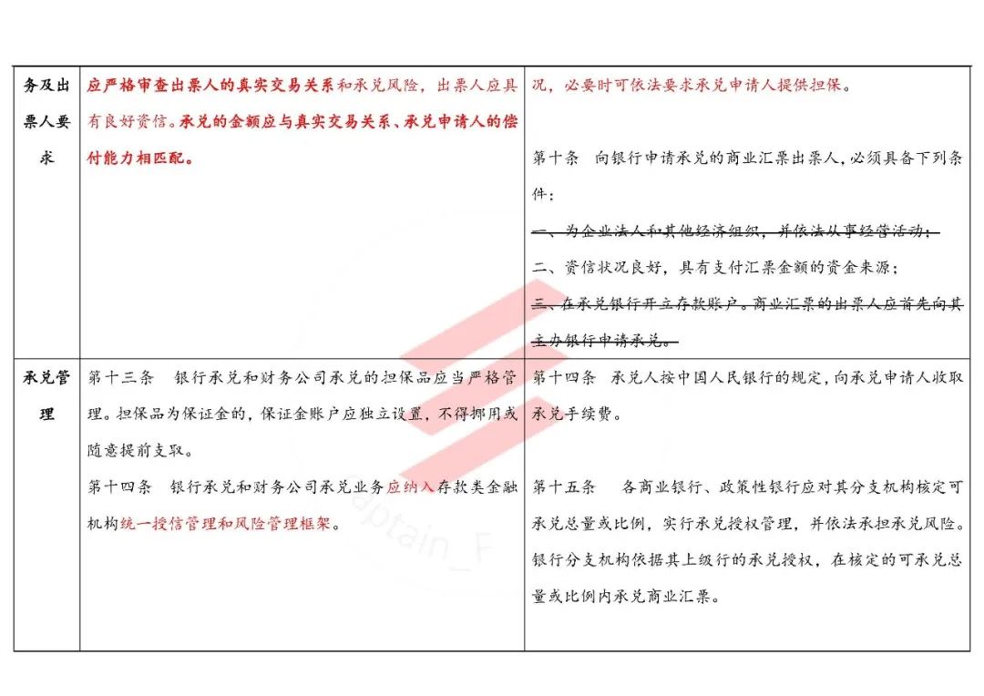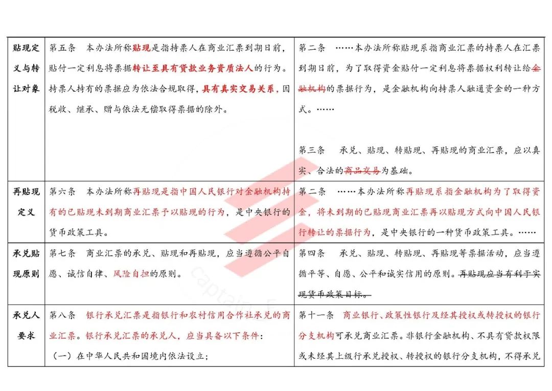 商業匯票承兌、貼現與再貼現管理辦法(征求意見稿)新舊對比