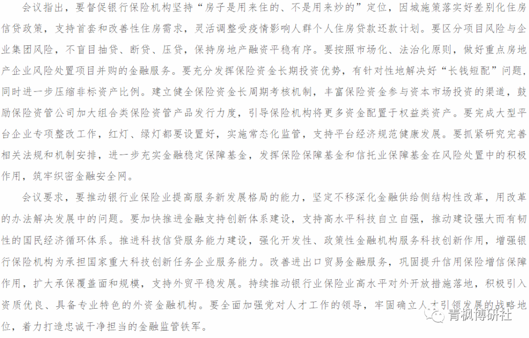 三、銀保監(jiān)會的學(xué)習(xí)新聞稿要點主要有(一)鼓勵撥備水平較高的大型銀行及其他優(yōu)質(zhì)上市銀行有序降低撥備覆蓋率,釋放更多信貸資源(參見如何理解”降低撥備覆蓋率“這一提法?);(二)服務(wù)新市民、做好“十四五”規(guī)劃重點領(lǐng)域和重大項目融資保障、幫扶困難行業(yè)和企業(yè)、支持能源保供和物流行業(yè)和企業(yè);(三)進(jìn)一步壓縮非標(biāo)資產(chǎn)比例;(四)完成大型平臺企業(yè)專項整改工作;(五)進(jìn)一步充實金融穩(wěn)定保障基金。
