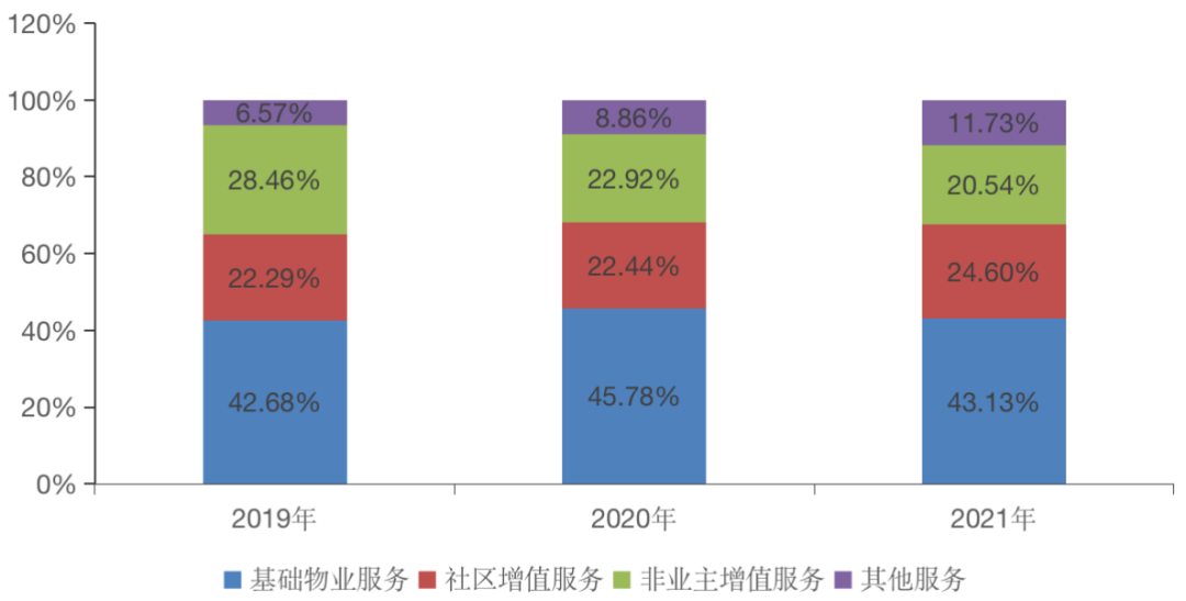 2019-2021年部分上市物企各業(yè)務(wù)線毛利占比