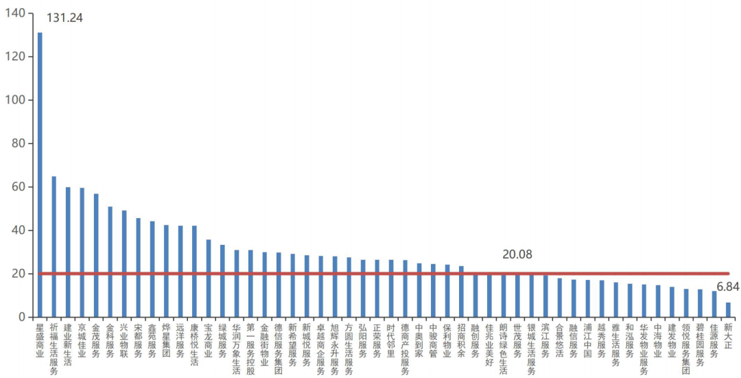 特發(fā)服務(wù)、華潤萬象生活和招商積余三家市盈率最高,分別為51.39倍、41.92倍和36.49倍。特發(fā)服務(wù)與華潤萬象生活市盈率也是少有的超過40倍的上市物企。