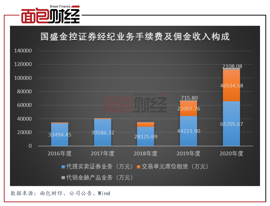 報告期間,受益于A股市場上行和交投活躍,國盛金控的證券經紀業(yè)務增幅較大。公司的證券經紀業(yè)務由國盛證券開展。2020年,該業(yè)務收入達10.78億元,同比增長65.76%,占近半公司總營收。根據(jù)中國證券業(yè)協(xié)會統(tǒng)計,同期證券行業(yè)代理買賣證券業(yè)務和代理銷售金融產品實現(xiàn)的合計凈收入占營業(yè)收入28.89%。公司對證券經紀業(yè)務的依賴程度遠高于行業(yè)水平。