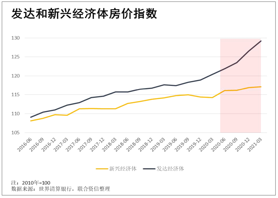 2.疫情期間,發達和新興經濟體的房屋價格都呈現上行的趨勢。其中,發達經濟體房價增速明顯快于新興經濟體,主要原因為發達經濟體疫情期間實行的寬松政策力度顯著大于新興經濟體。