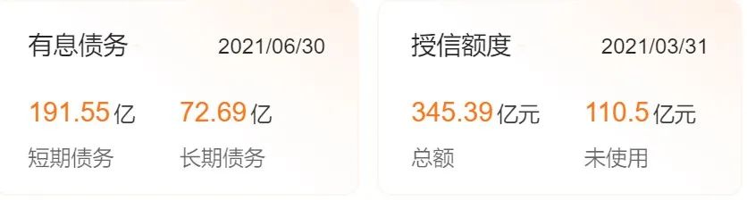 企業預警通顯示,截至2021年6月30日,雪松實業有息債務191.55億元,長期債務72.69億元。負債總額498.80億元,資產總計911.86億元,杠桿地產計算了下,資產負債率大概是54.7%。