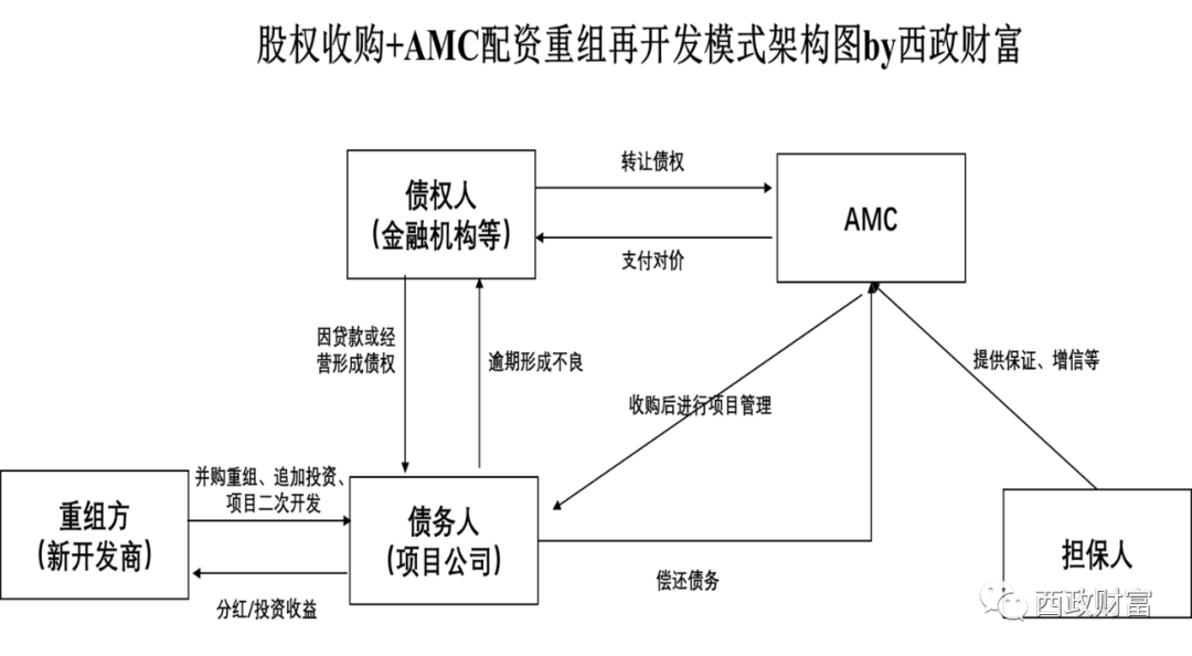 在項(xiàng)目股權(quán)結(jié)構(gòu)清晰、項(xiàng)目易掌控的情況下,可考慮直接收購項(xiàng)目公司的股權(quán),清退原股東,并與AMC合作進(jìn)行重組再開發(fā)。