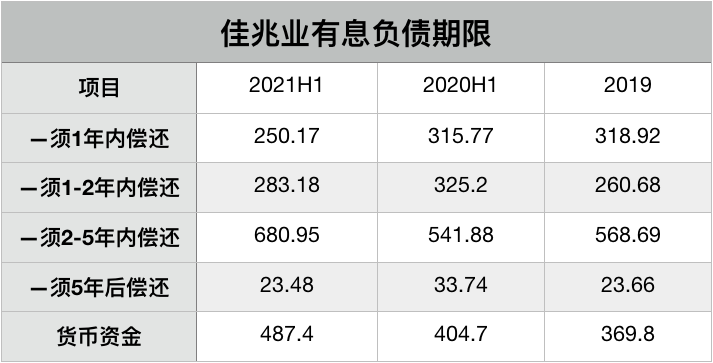 截至上半年末,佳兆業一年內到期的短期債務占比僅為20.2%,同比減少5.8個百分點,長短期償債能力較為可觀;借款種類上,銀行借款占比較2020年年末提升5個百分點。