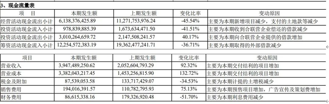 公告解釋是“本期新增項(xiàng)目減少,支付的土地款等減少”。