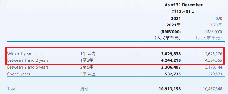 其中,一年期的債務超38億元,2020年末時該數(shù)字為不到27億元。