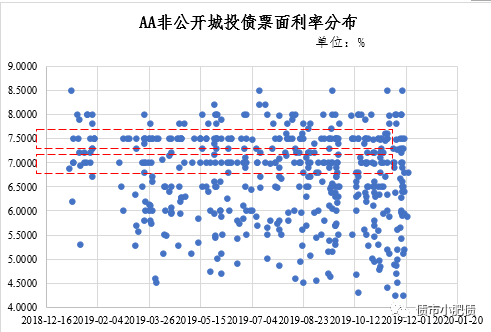 資質好者票面高于資質差者就算惹,小編還發現很多發行人意外偏愛7.0%、7.5%、8.0%這三個利率,不僅相同主體在不同時間節點都為同一利率,甚至資質迥異,期限不一的主體,都選在這三個利率上,三者幾乎占據了2019年新發AA城投非公開公司債近三分之一的份額。