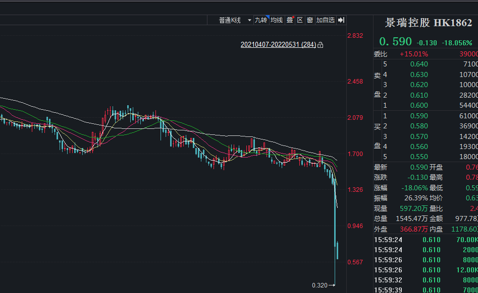 5月30日,景瑞下跌-47.83%,成交量為3138萬,成交金額184.萬,區(qū)間振幅高達(dá)80.43%。正是如此夸張的波動(dòng),引發(fā)了市場的廣泛關(guān)注。