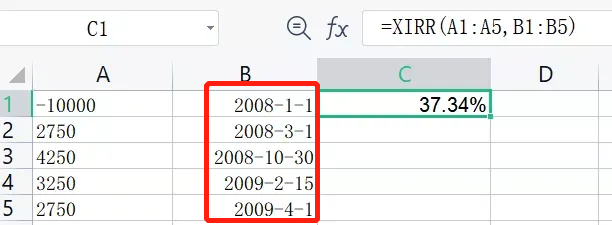 如果說(shuō)MIRR是在再投資回報(bào)率上對(duì)IRR進(jìn)行一定程度的改良和彌補(bǔ),那XIRR則很好的彌補(bǔ)了IRR在時(shí)間效益上的局限。