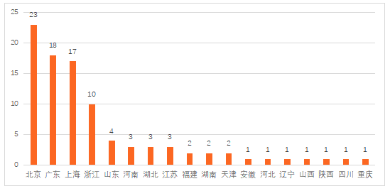 據(jù)零壹智庫不完全統(tǒng)計,截至2021年4月23日,債權(quán)撮合類平臺約有40個,其中北京注冊平臺最多,有14個,其次是上海8個,2個區(qū)域合計占比55%。