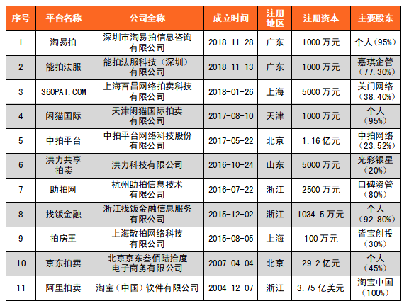 成立時間較早的阿里拍賣與京東拍賣分別隸屬于淘寶網(wǎng)與京東網(wǎng),借助其綜合電商平臺優(yōu)勢開展不良資產(chǎn)司法拍賣服務(wù),并于2016年11月25納入最高人民法院司法拍賣網(wǎng)絡(luò)服務(wù)提供者名單庫。