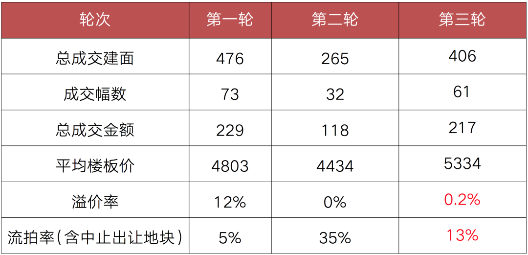 表:濟南三輪土拍熱度對比(萬平方米、億元、元/平方米)