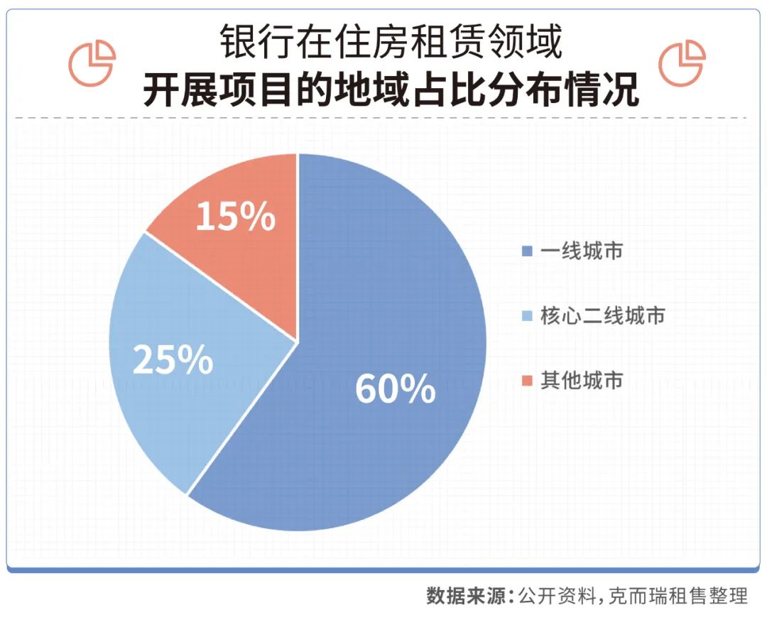 從地域分布來看,銀行在租賃住宅領域共涉及全國37個城市,而一線城市的北上廣深則是銀行和租賃結合最緊密的地區,占比近60%。