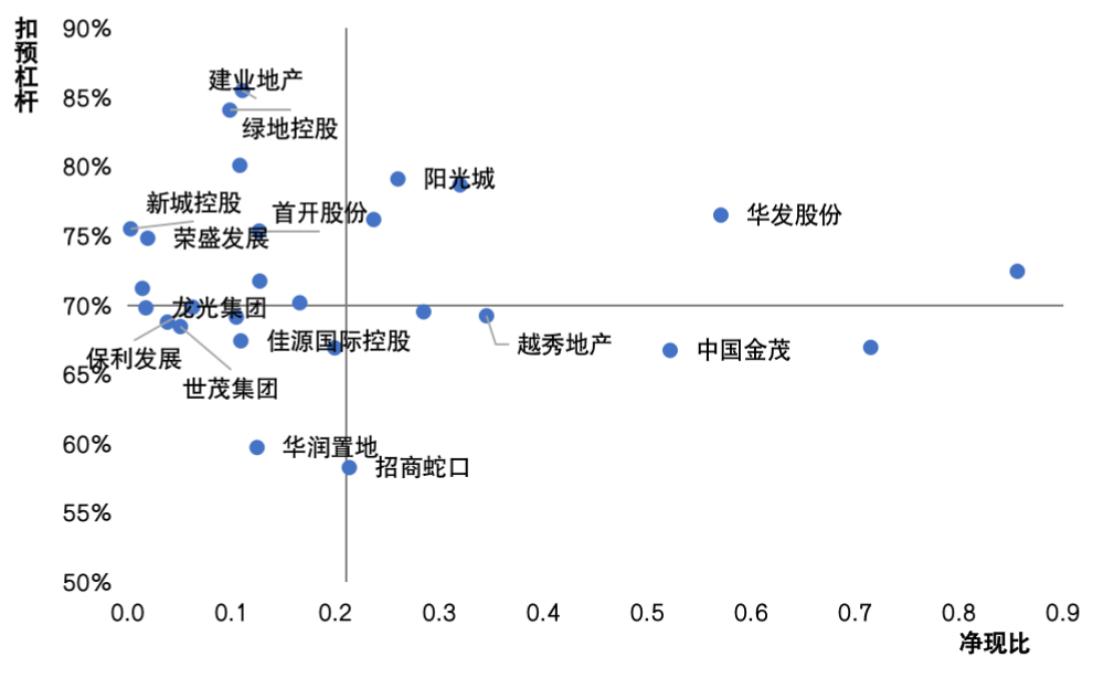 圖:27家房企2020年凈現比及扣預杠桿散點圖