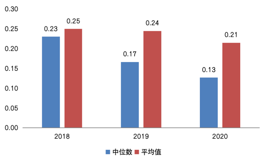 圖:27家房企2018-2020年凈現比中位數及平均值